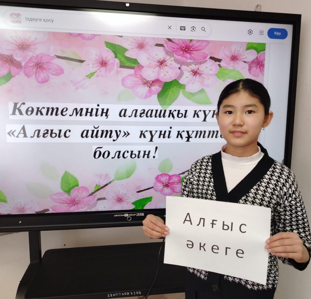 Бүгін мектебімізде 1-наурыз – Алғыс айту күніне орай барлық сыныптарда сынып сағаттары өткізілді. Шараның басты мақсаты – оқушыларды үлкенді құрметтеуге, кішіге қамқор болуға, ата-анаға, ұстазға және достарына деген ризашылық сезімін білдіруге тәрбиелеу болды....